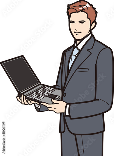 ノートパソコンを持つ男性