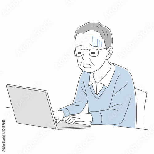 青ざめた表情でパソコンを操作する男性のイラスト素材