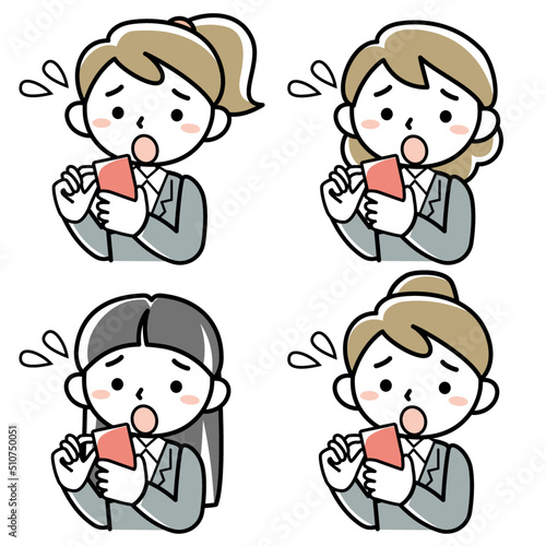 スマホを見て慌てる若い女性の上半身セット