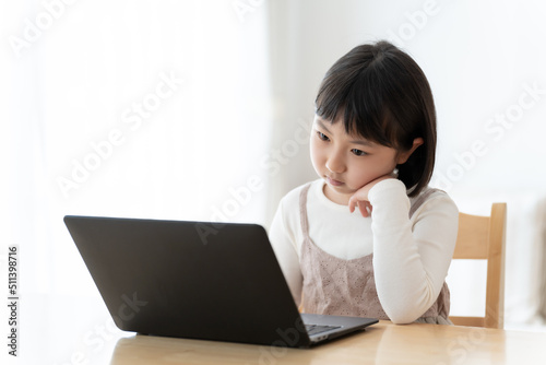 パソコンを使いながら困った顔をする女の子