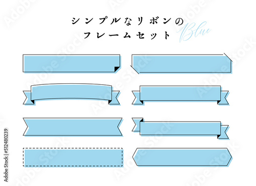 シンプルなリボンのフレームセット 水色 青 ベクター