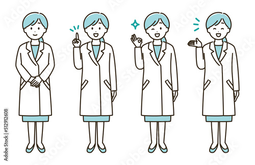 白衣を着た女性の表情バリエーションのイラストセット(水色バージョン)