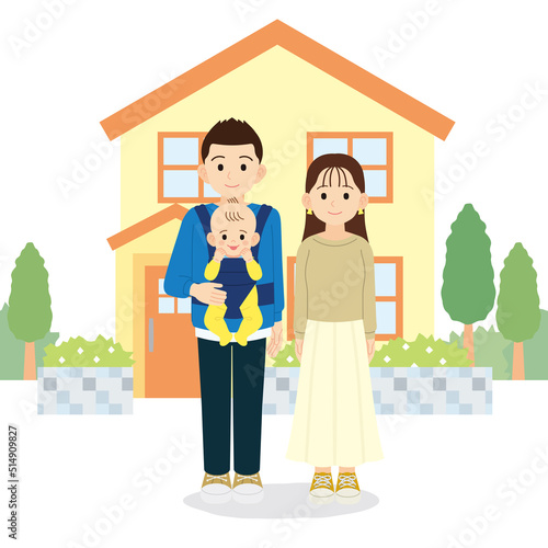 一軒家 家族 夫婦 赤ちゃん 輪郭線なし
