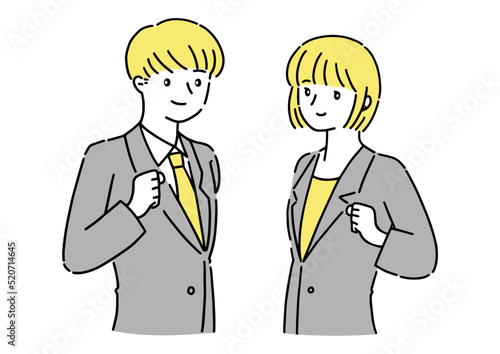 シンプルなスーツを着た若い男女