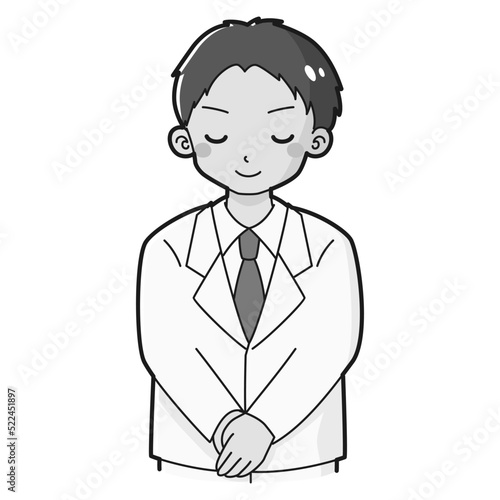 お辞儀をする白衣を着た男性のイラスト