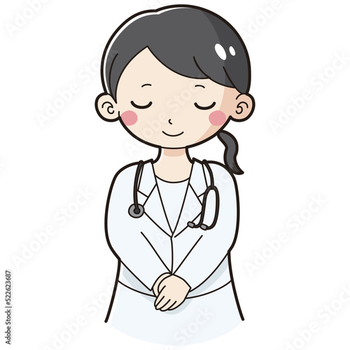 お辞儀をする白衣を着た女性のイラスト(聴診器付き)