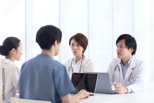 会議をするドクターと看護師