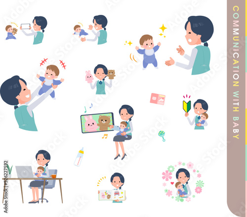 赤ちゃんとコミュニケーションをとる事務員女性のセット