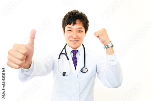 ガッツポーズの医師