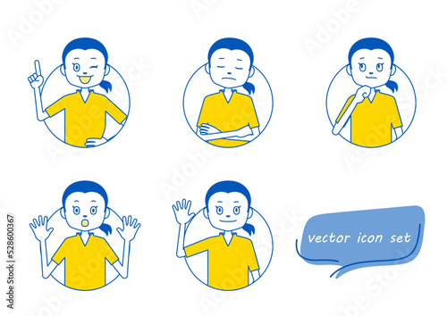 長髪の男の子のアイコンイラストセット(白背景・ベクター・切り抜き)
