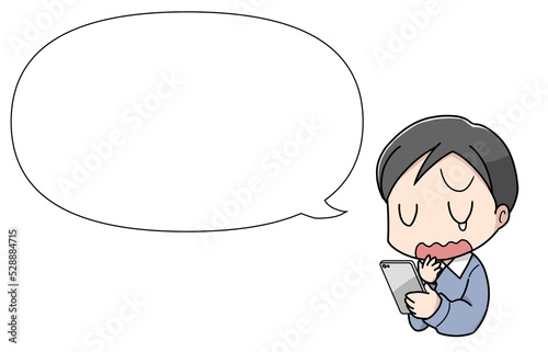 スマートフォンを使う大人の男性・悲しみ顔 フキダシ付き