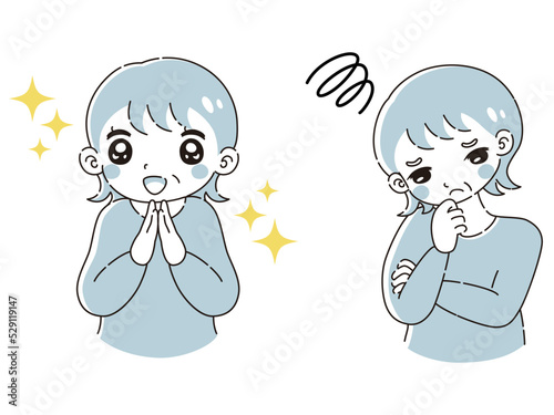 ときめきの表情と困っている表情のシニア女性 イラストセット