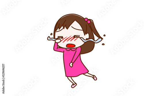 (全身斜め)大泣きして涙が流れながら走って逃げている少女