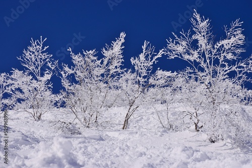 冬景色 青空に映える霧氷林