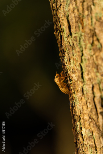 木に止まるセミの抜け殻