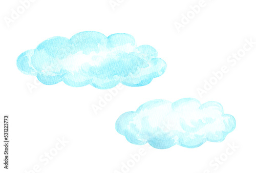 イラスト素材: 水彩絵の具で手描きした水色の雲/複数個(透過風景)