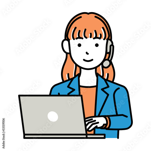 コールセンター オペレーター 女性 ノートパソコン ロングヘア