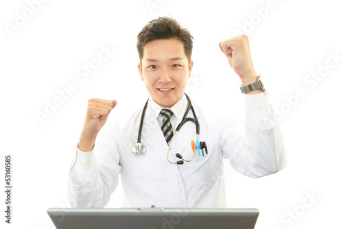 ガッツポーズの医師