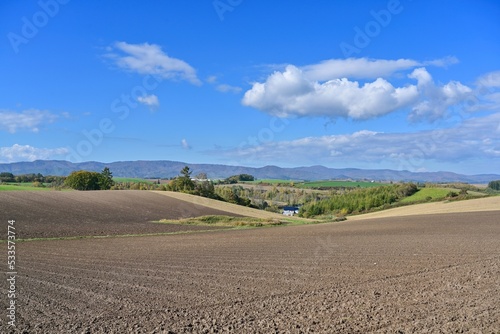 収穫を終えた美瑛の丘の晩秋の情景@北海道