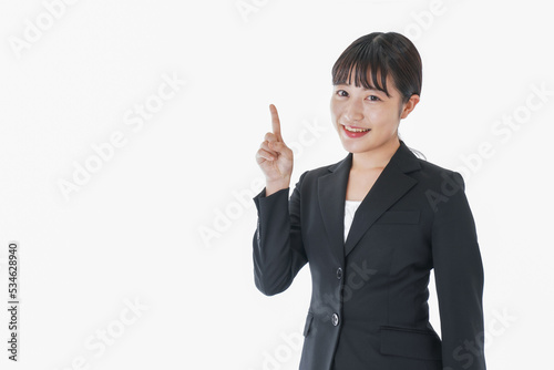 ポイントを示すスーツを着たビジネスウーマン