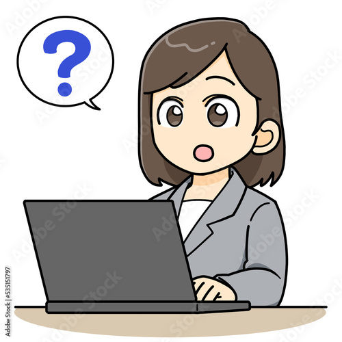 パソコンの前で疑問が浮かぶビジネスウーマン