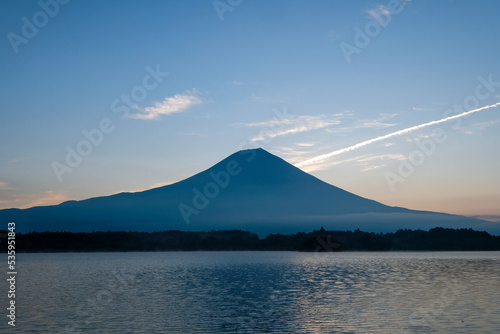 静岡県富士宮市田貫湖と早朝の雄大な富士山