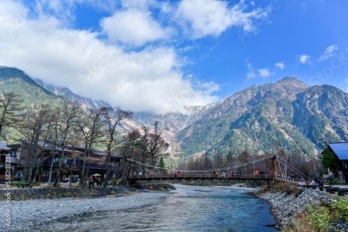 晩秋の河童橋と穂高連峰のコラボ情景@上高地、長野