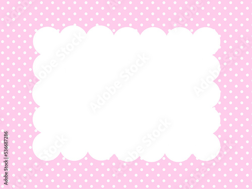 ドットの背景にもこもこのフレーム-ピンク