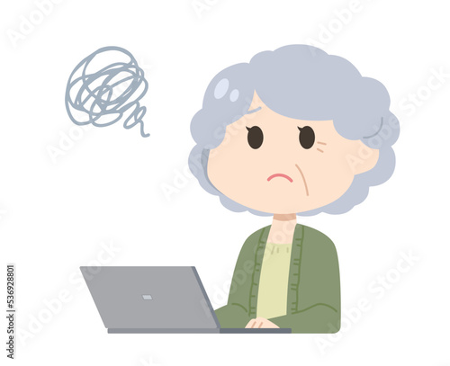 高齢女性 パソコン イラスト