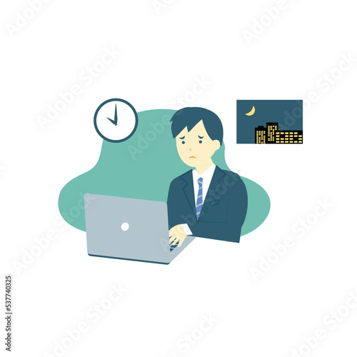 夜遅くまでパソコン残業をしている男性 /仕事/事務