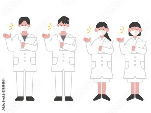 カルテを持って案内をするマスクを付けた医療従事者のイラスト
