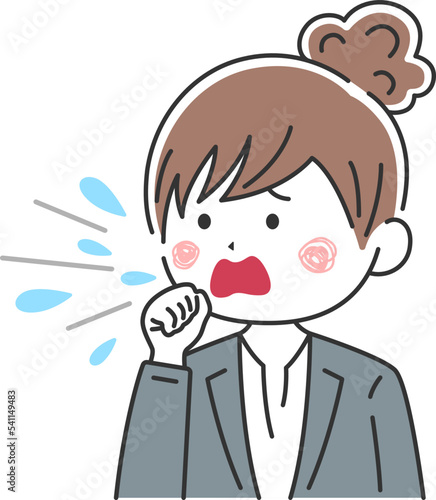 咳をする、髪を束ねた、ビジネスウーマンのイラスト