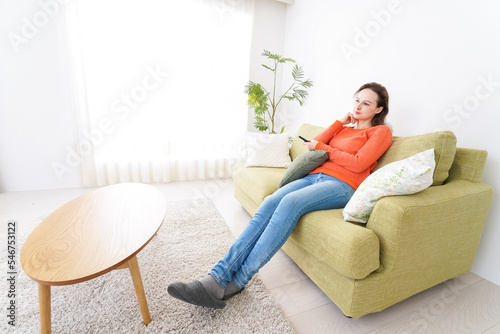 家でテレビを見る女性