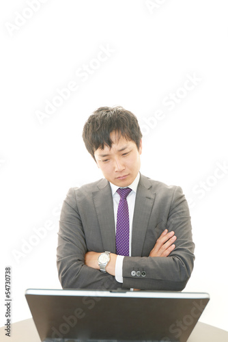 personal computer, personal computer, man, man, business, businessman, people, salaried employee, health, cosmetic, face, hair, japanese, fatigue, overwork, stress, flop, anguish, damp, apprehension, overtime, depression, model, good-looking, office, clean, white background, web, unrest, downsizing, copy space, pose, work, uniform, adult, expression, japan, corporate, employee, adult, work, training, newcomer