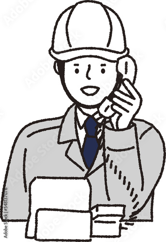 ヘルメット作業着姿の男性_電話