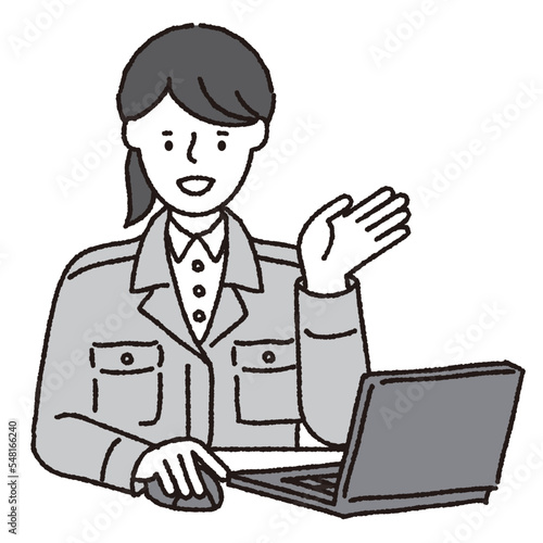 作業着姿の女性_パソコン