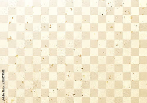 金の丸い和柄のフレームと金色の和紙の背景