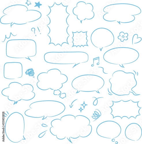 イラスト素材:手描きの吹き出し 背景は透過でセリフ部分は白ベタ 線は水色の筆ペン(透過背景)