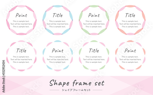 円・丸のフレームイラストセット。シェイプ 図形 飾り枠 背景 シンプルかわいい