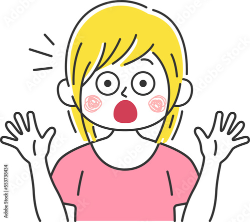 驚いてビックリする、白人女性のイラスト