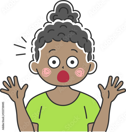 驚いてビックリする、黒人女性のイラスト