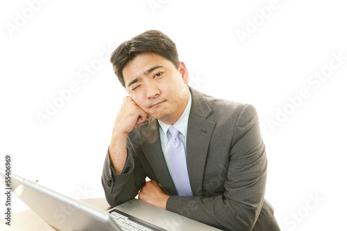 personal computer, personal computer, man, man, business, businessman, people, salaried employee, health, cosmetic, face, hair, japanese, fatigue, overwork, stress, flop, anguish, damp, apprehension, overtime, depression, model, good-looking, office, clean, white background, web, unrest, downsizing, copy space, pose, work, uniform, adult, expression, japan, corporate, employee, adult, work, training, newcomer