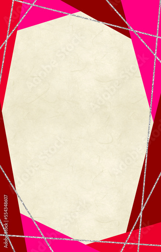 背景素材 和紙とピンクのモザイクのフレーム 銀のフレーム