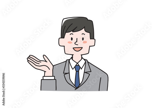 何かを紹介しているビジネスマン