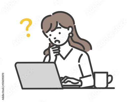ノートパソコンを使いながら首をかしげる女性のベクターイラスト素材/ビジネス/在宅ワーク