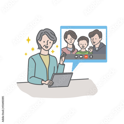 ビデオ通話で息子家族(娘家族)と話すシニア女性