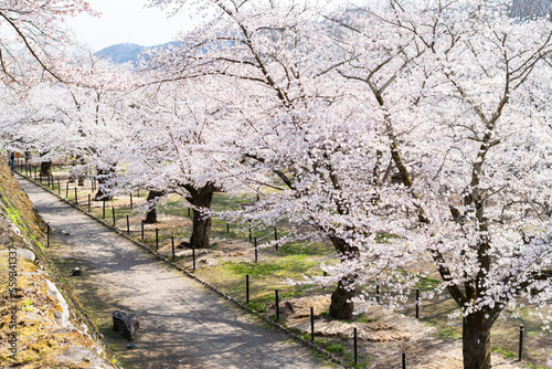 満開の桜の花を俯瞰から撮影した