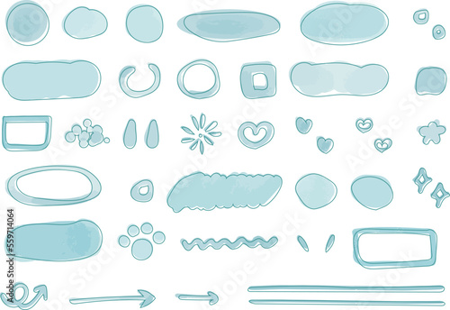 かわいい手書き水彩セット(あしらい・フレーム)青