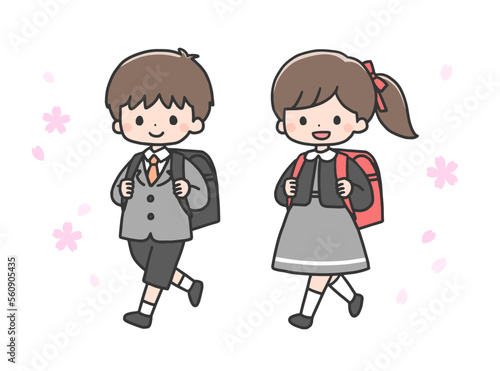 入学式の男の子と女の子 小学生