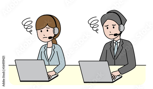 コールセンター オペレーター カスタマーサポート 困っている男性と女性